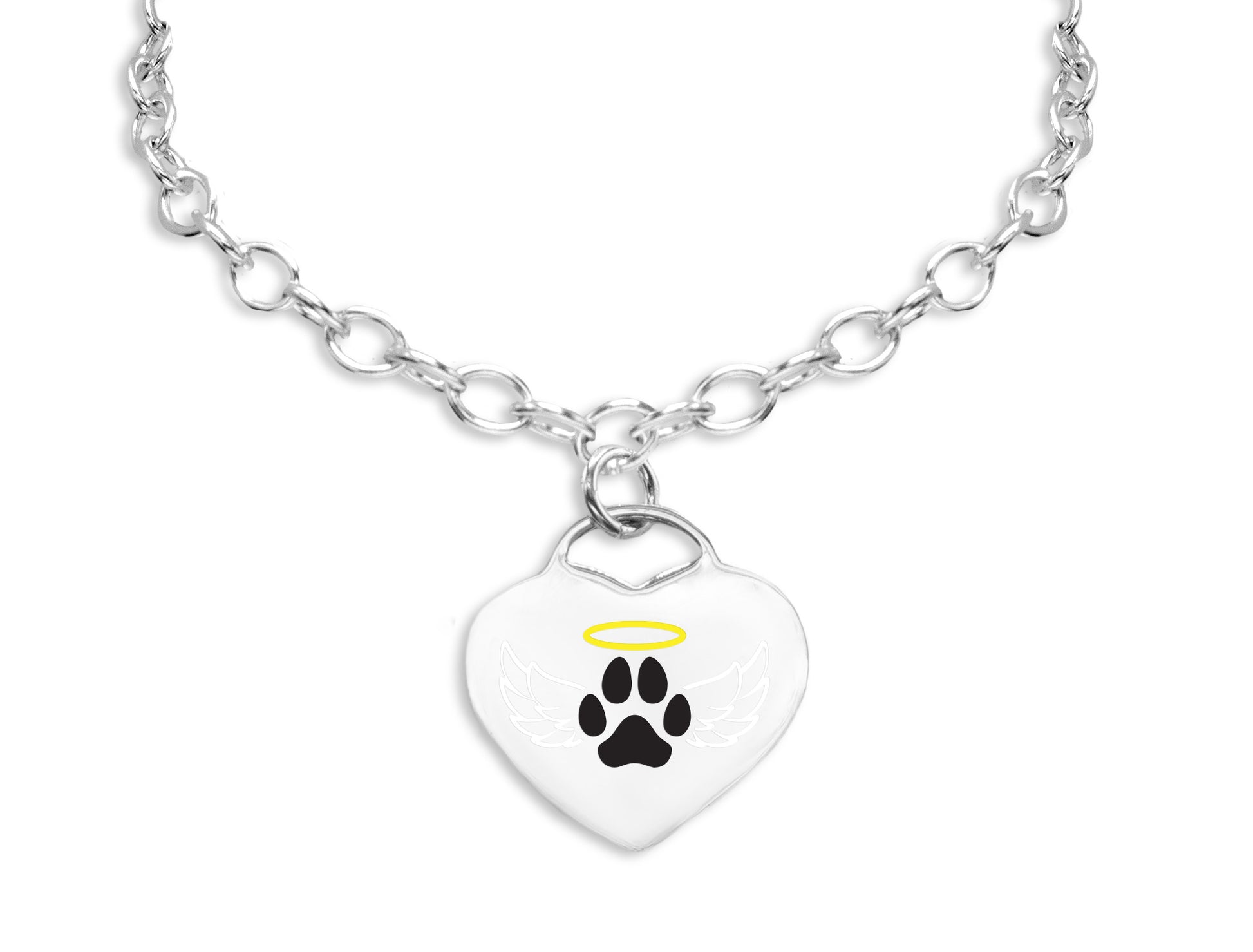 Dog Paw Angel Wings Charm – a heartfelt tribute to the beloved dogs who have left paw prints on your heart. This exquisite .925 sterling silver charm features a detailed dog paw adorned with delicate angel wings, symbolizing the everlasting presence of your furry friend. Perfect for bracelets or necklaces, this charm allows you to carry a piece of your angelic pup wherever you go. Crafted with meticulous attention to detail, it captures the essence of your cherished memories in a timeless keepsake. Honor the love and companionship of your canine angel with the Dog Paw Angel Wings Charm.