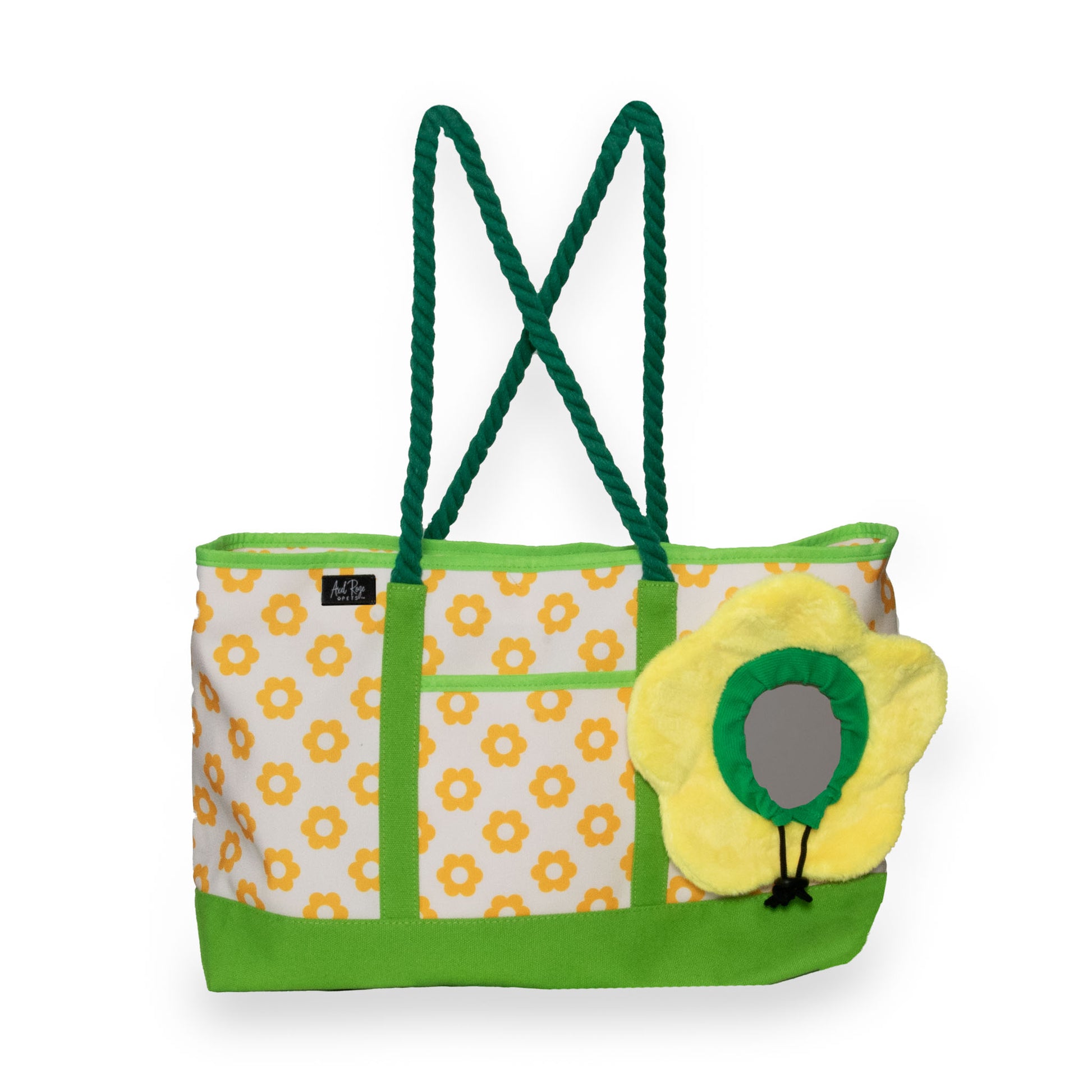 Introducing the Flower Power Tote Bag – a charming and functional accessory from Axel Roze Pets that combines playful design with practical features. This tote bag allows you to carry your small dog in style, with a delightful flower opening for your pet to peek out and enjoy the ride.